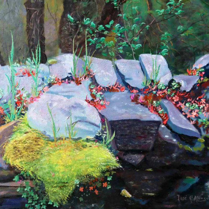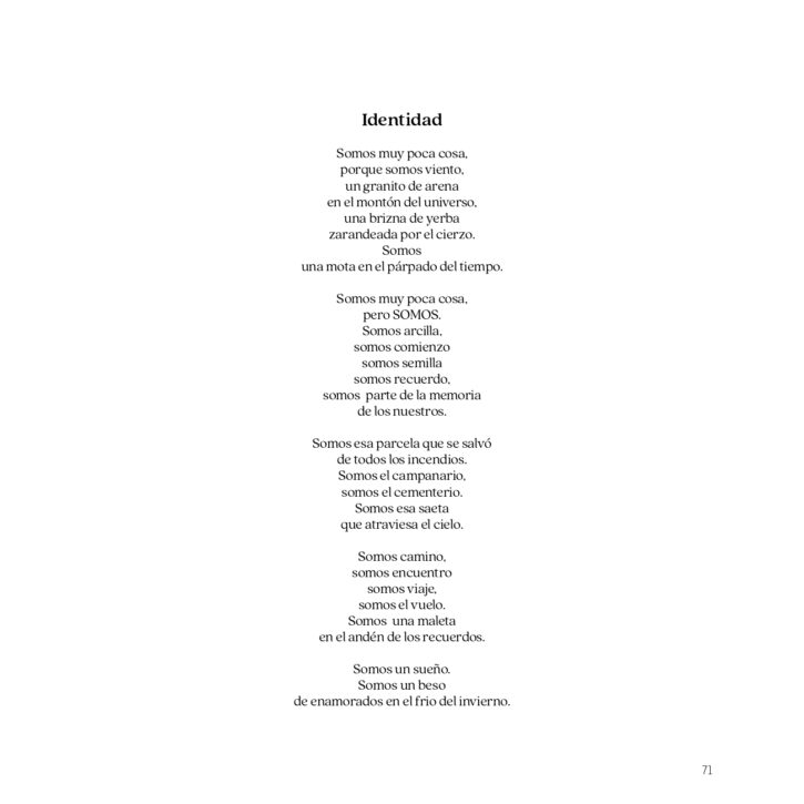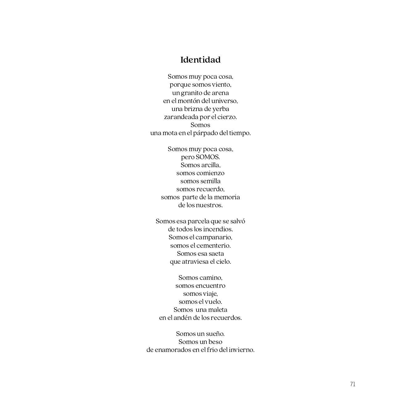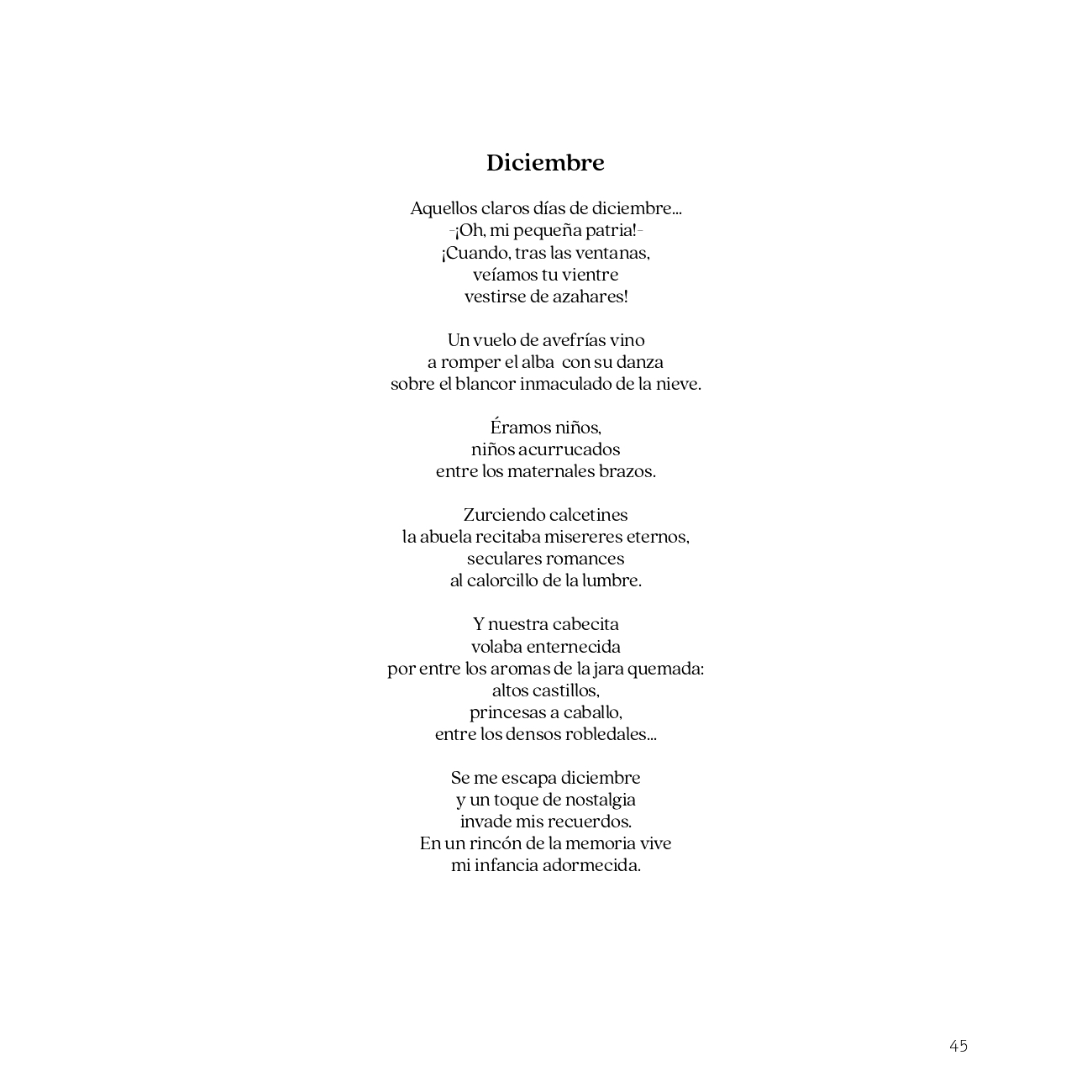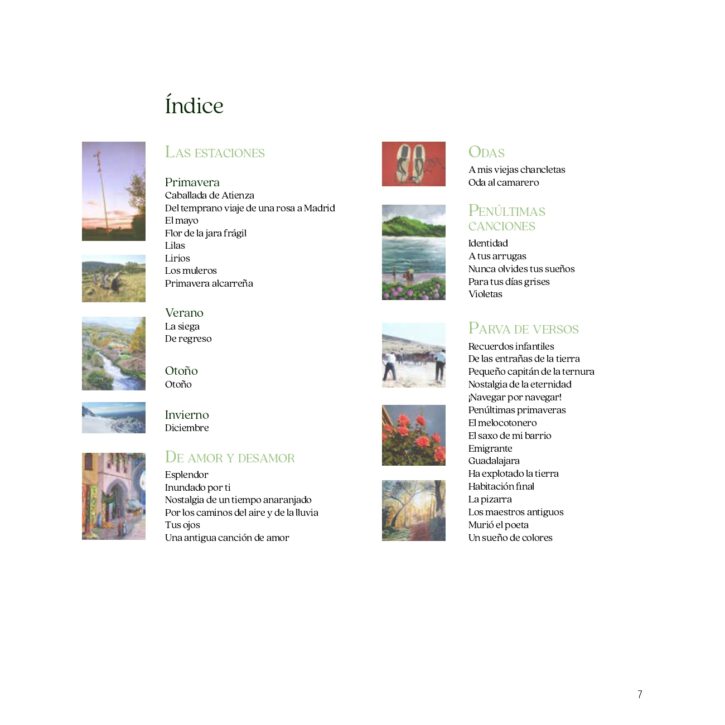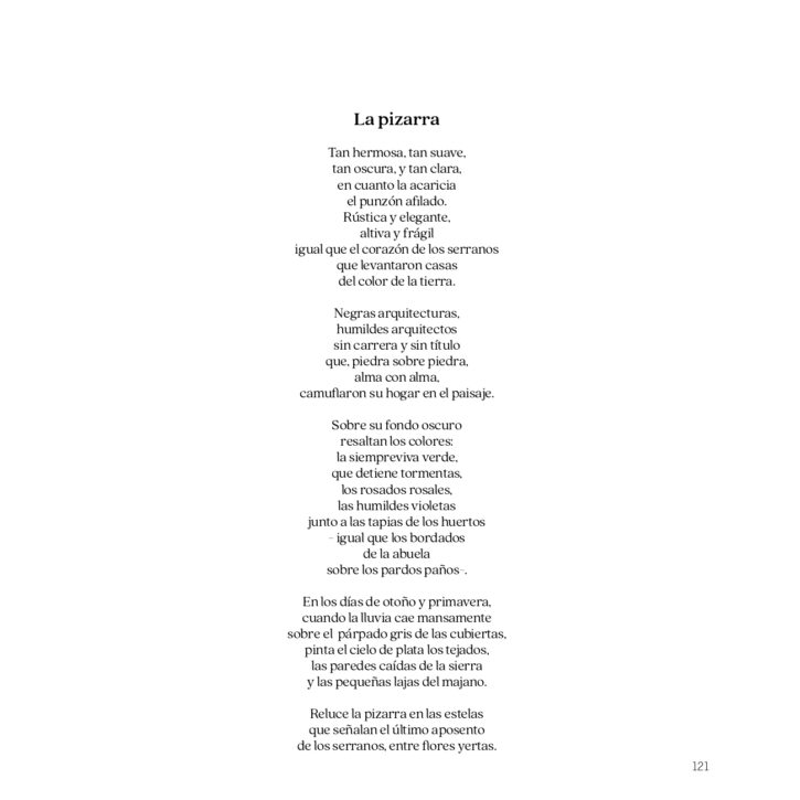 Portada «Guadalajara. Aquí, junto a la tierra»Créditos «Guadalajara. Aquí, junto a la tierra»Índice «Guadalajara. Aquí, junto a la tierra»A tus arrugas«La tía Marta». Óleo J. Aº. AlonsoDe las entrañas de la tierra«Las ventanas» (Robledo). Óleo J. Aº. AlonsoDel temprano viaje de una rosa a Madrid«Una rosa». Óleo. José Aº. AlonsoDiciembre«Diciembre». Foto José Aº. Alonso«Flores de jara». Foto José Aº. AlonsoFlor de la jara frágilIdentidad 1Identidad 2«Una maleta en el andén de los recuerdos». Sanguina y carboncillo. J. Aº. AlonsoLa pizarra«Una pared de pizarra». Óleo J. Aº. AlonsoPor los caminos del aire y de la lluvia«El país de los líquenes azules». Óleo. J. Aº. Alonso